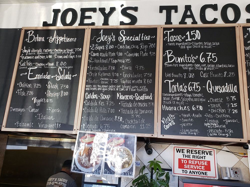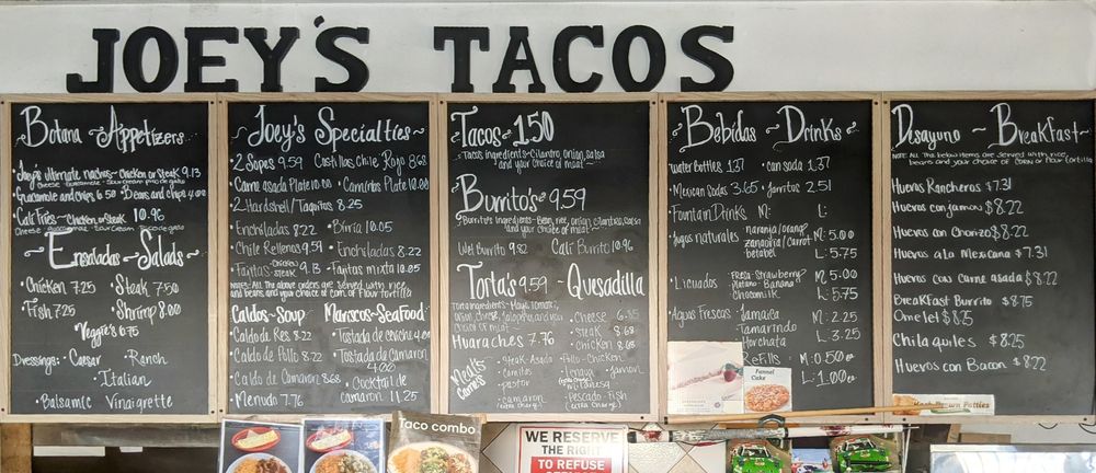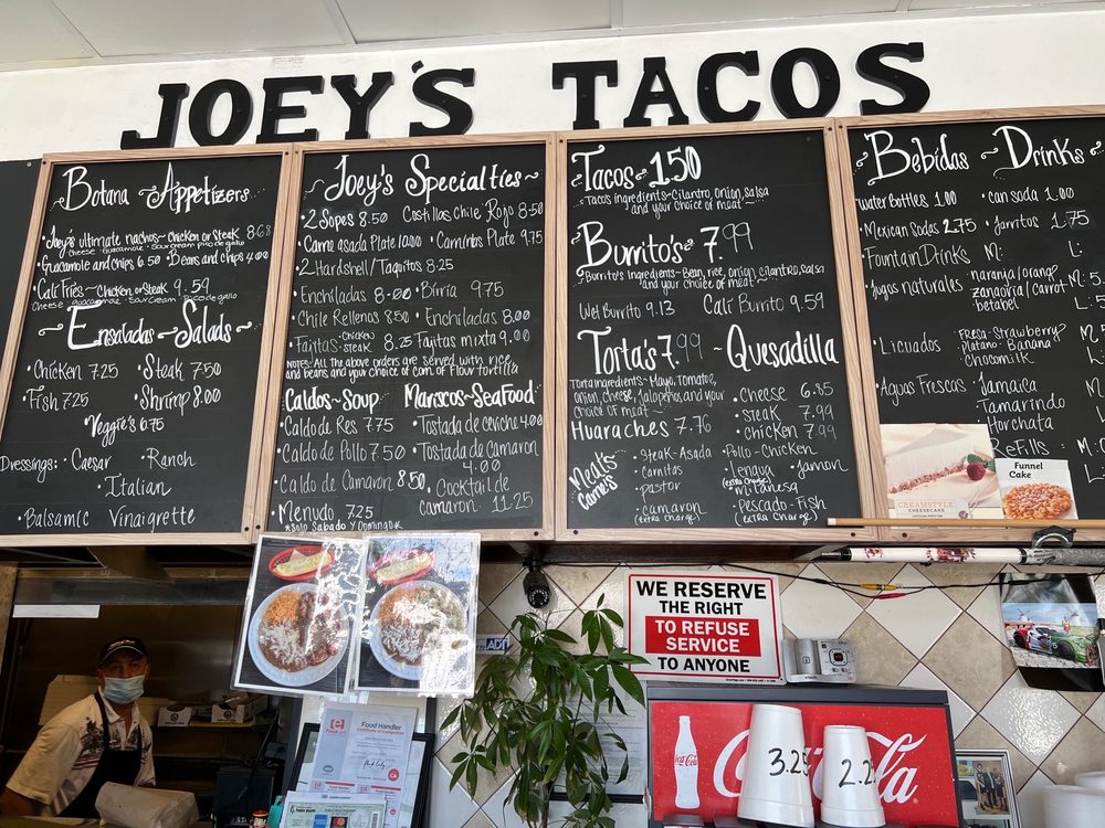 Joey’s Tacos Menu